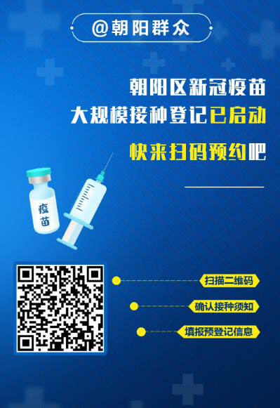朝阳区新冠疫苗大规模接种已启动,市民可扫码预约!